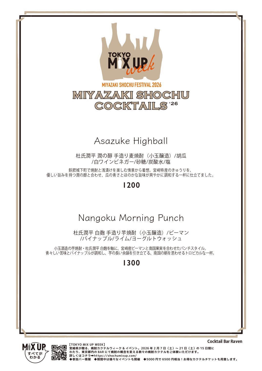| WEBサイト | https://www.instagram.com/cocktail_bar_raven |