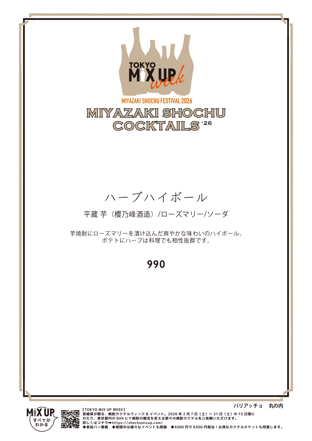 | カクテルチケットの利用可否 | 利用不可 |