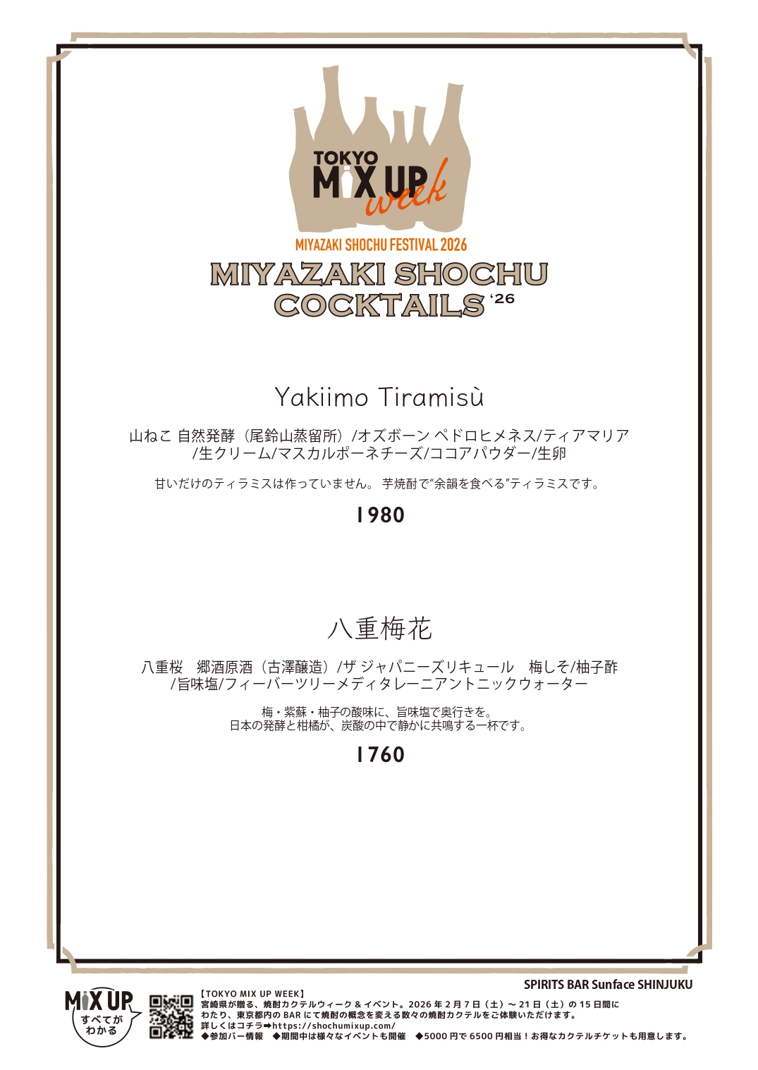 | 店舗名 | SPIRITS BAR Sunface SHINJUKU |